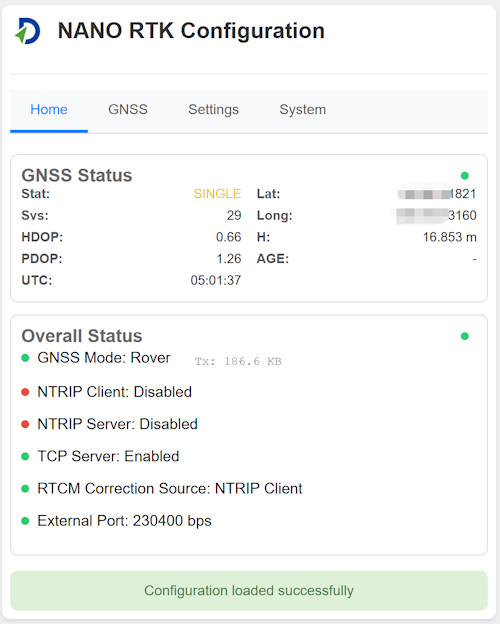 The NANO RTK Receiver will start to get RTCM data from NTRIP caster automatically.