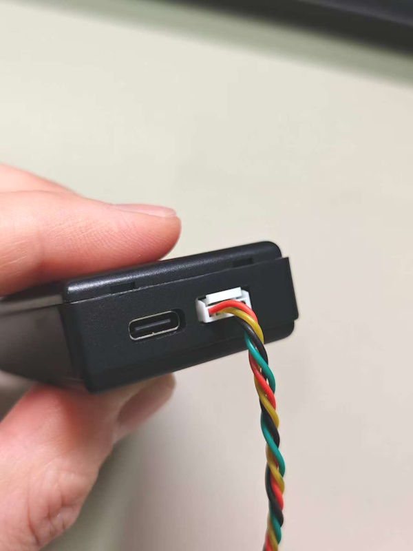 Connect the NANO RTK’s 6P port (next to the USB port) to the Radio’s port (also next to the radio’s USB port) using the supplied cable.