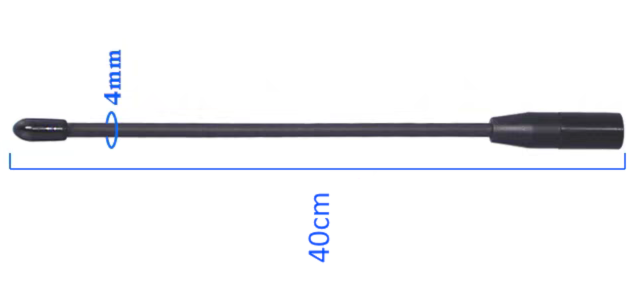 The picture below shows a pair of Telemetry radios with two antennas: one long antenna (~40 cm) with about 15 dB gain (typically used for transmitting at the base station), and one short antenna (~12cm) with about 5 dB gain (used on the receiving end).